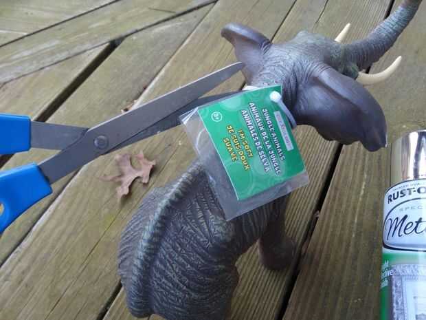 -cortar la etiqueta sobre el juguete animal (o limpie y seca si no es nuevo)