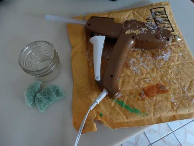-utilizar espuma de pegamento de cola caliente en la parte inferior de la jarra