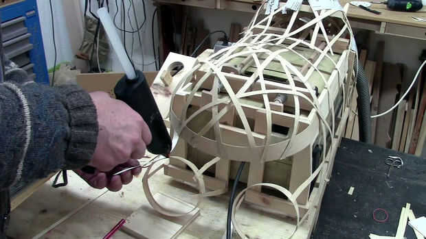 Pegué las tiras de chapa de la jaula con el adhesivo caliente.