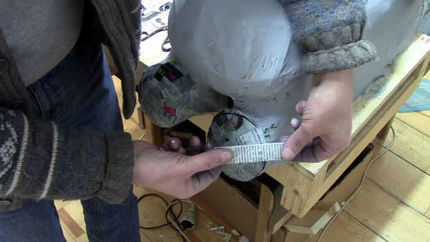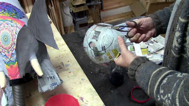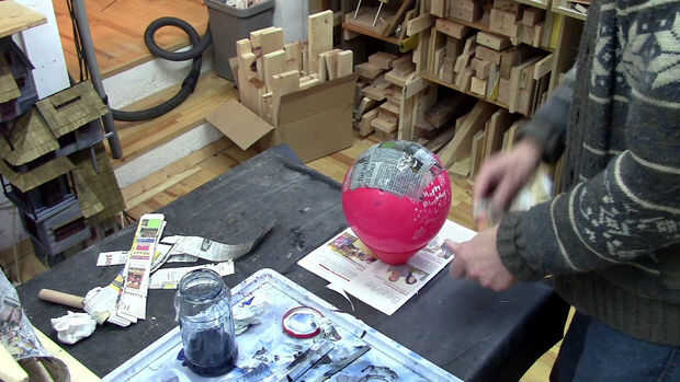 No quería pies planos. Por lo tanto, cubrí un globo con papel maché. Después de seco el pegamento, me cortar discos y había pegado en los pies.