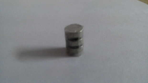 Ahora toma todas las celdas de botón y cinta en la serie. Ahora las tiras de papel de aluminio pueden ser grabadas en ambos lados de la batería.