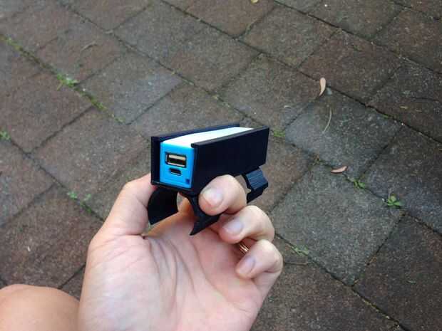 Ciclo de mucho y yo a unos cuantos accesorios electrónicos mi manillar de bicicleta. Mi problema es que use una bolsa de bicicleta para sostener mi powerbank para alimentar mis dispositivos y es bastante molesto quitar y montar nuevamente la bolsa en mi moto cada vez que yo dejo mi bici en la estación de tren. En lugar de utilizar una bolsa decidí crear un soporte simple para mi powerbank que fácilmente puede colocar mi powerbank.