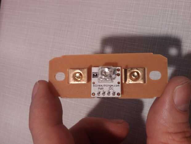 Fue bastante fácil Levante la parte posterior del interruptor con un destornillador de cabeza plana. Una vez que lo abrí he podido encontrar un buen ajuste para lo BlinkM