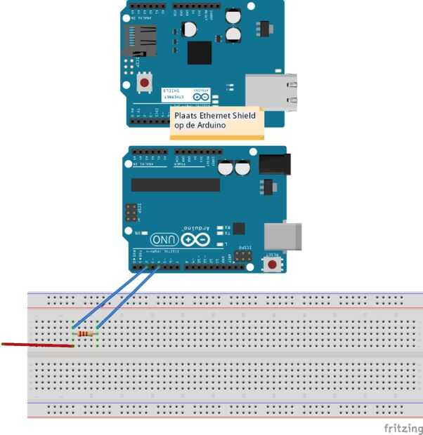 1. De op de la bevestigen "Ethernet Shield de ALS eerste moet je" Arduino Uno.