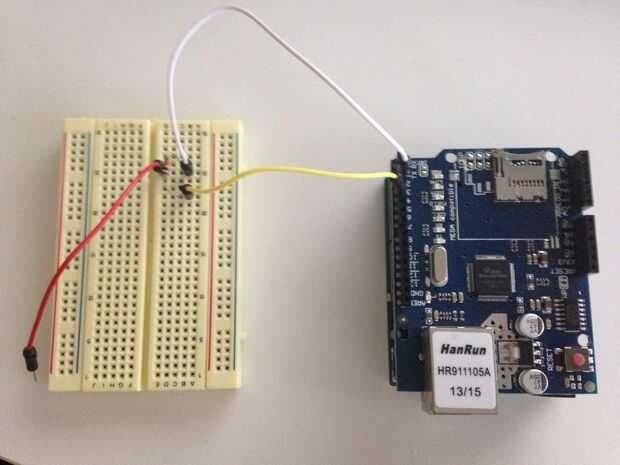 3. Daarna kan je 2 pernos verder opschuiven en ook een kabeltje en 4 doen (denk hierbij goed aan de código, daar werd een aangemaakt variable waar deze 2 nummers inzaten).