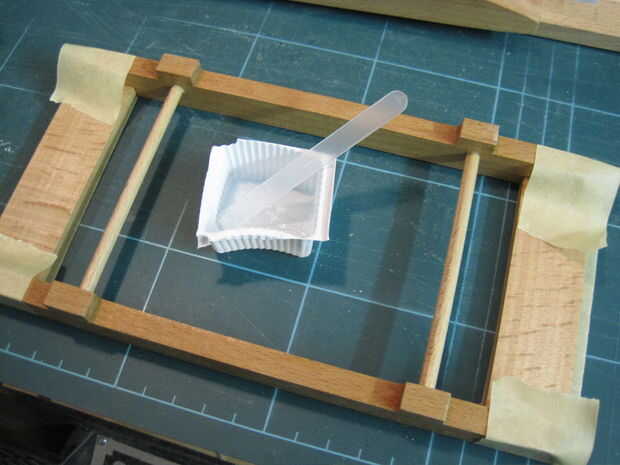 Pegamento epoxi, use cinta adhesiva para mantener la posición correcta.