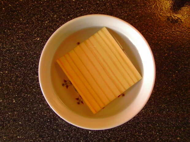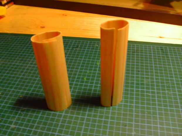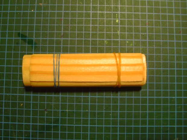 Una vez bien mojado, tome la primera capa de chapa y gire suavemente en el encendedor. Si vas con cuidado suficiente que ajusta a forma de encendedor. Asegúrese de que el ajuste es muy apretado y mantener con bandas de goma. Espere que se seque completamente. Tiene que estar totalmente seco, ya que el agua expande a madera, pero se puede utilizar un secador de pelo para hacer las cosas más rápido.