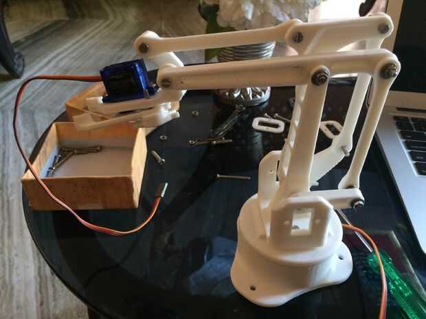 Tienes que comprar un brazo robótico o hacerlo por tu cuenta. Aquí utilizado es un comprado y es un 3D impreso de ebay. Aquí está el enlace de Ebay si usted quiere comprar el mismo. http://www.eBay.in/ITM/Robotic-ARM-/182061698367?...