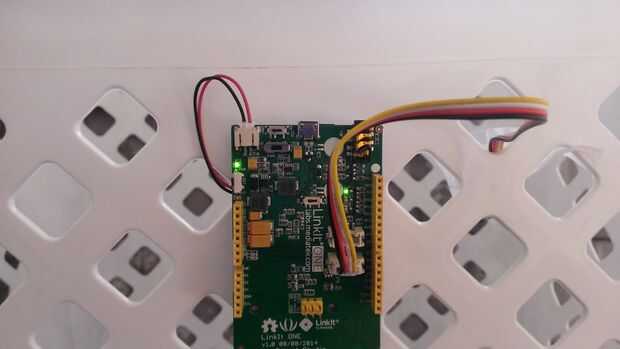 Con alguna cinta, sujete su LinkIt uno a su cesta de lavandería. La batería es bastante liviano, incluso lo regular cinta scotch antiguo (para proyectos a más largo plazo, puede utilizar cinta adhesiva o pegamento caliente de algún tipo).
