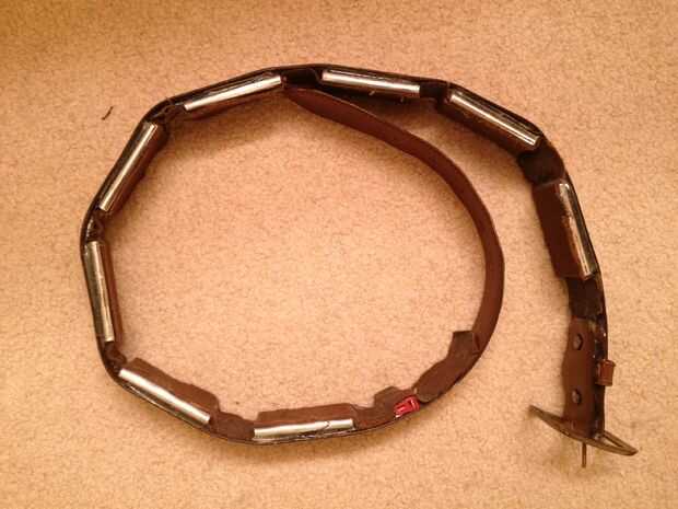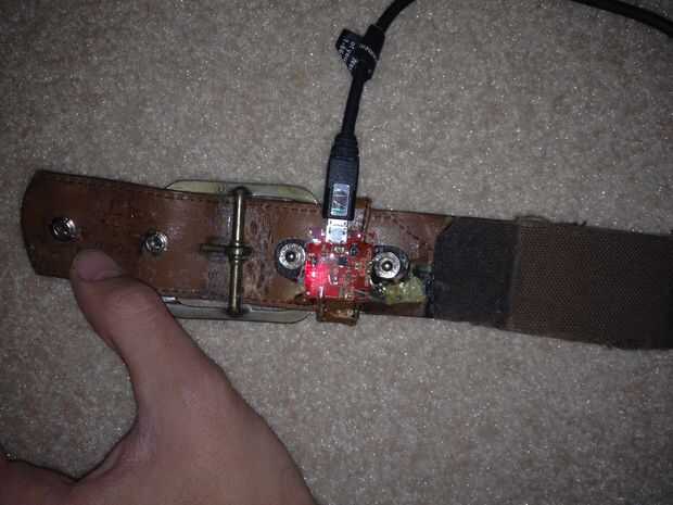 La placa de circuito se esconde detrás de la hebilla del cinturón. Todo está minuciosamente ajustaron/aislado, pero no existen mecanismos seguridad en este dispositivo, lo que es bastante peligroso. Un circuito de seguridad debería incorporarse localmente en cada célula. Yo he usado esto durante varios meses y nada ha ido mal, pero siempre existe la posibilidad de algo en llamas con el mucho poder alrededor de su cintura; un incendio en algo atado a la cintura sería muy malo.