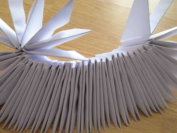 Paso 6: Una vez que haya utilizado todos sus triángulos (30 en layer(2) y 30 en layer(1)) conectar el último tramo (uno que no está en una ranura) e insértela en la Ranura pasada (uno que no tiene una pierna en ella). Mira la primera foto para ver si lo hiciste correctamente. Si usted tiene múltiples ranuras sin relleno y sin usar las piernas entonces volver a miran las instrucciones y fotos porque estás haciendo algo mal:).