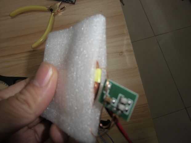 Utiliza un plástico negro que son ampliamente utilizados en el empaquetado para hacer que la cáscara. Use una tijera para hacerlo, tenga en cuenta que no hacerla demasiado grande o pequeño, hacen conveniente para la taza de te. También use una tijera para hacer un "bolsillo" en el bloque de plástico y poner el cargador sin hilos en él. Utilice una cinta para arreglarlo.