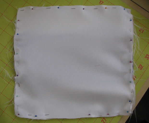 Derecho contra derecho, coinciden con las bandas juntos y la clavija. Asegúrese de dejar una abertura pequeña para que puede voltear la almohada derecha hacia fuera.