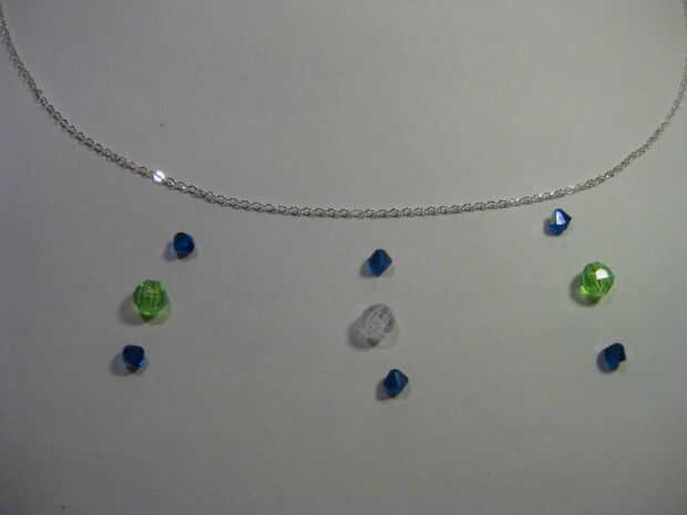Encontrar un patrón: algunas maneras de obtener ideas son buscar en las tiendas de joyería online.  El diseño que utilizaremos hoy es sólo un simple collar centrado.  Cuando haya elegido su pattern(s), hacer un mock up poniendo hacia fuera las cuentas en orden contra la cadena.  Hacer esto le dará una vista previa de tu collar