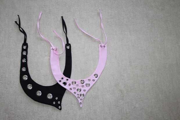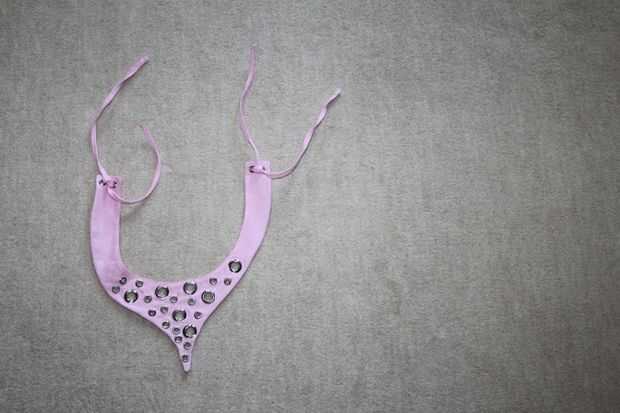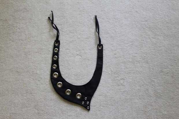 Pase la delgada banda estrecha a través de los anillos en ambos extremos del collar y un nudo.