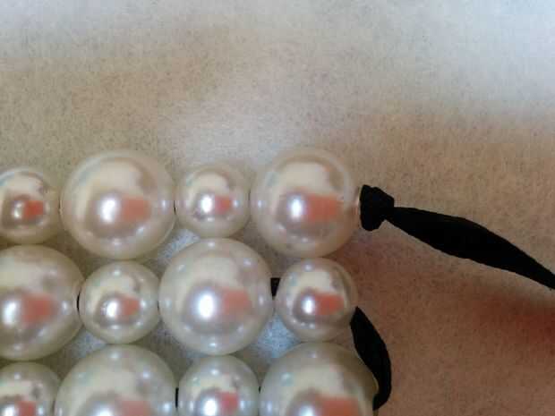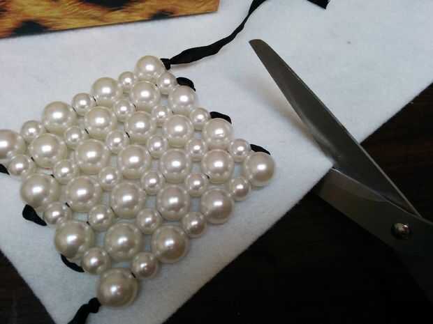 Cuando termines con maquina hacer un nudo en el extremo de la cinta contra el último grano. Cortó la cinta en el borde de ambos extremos de la cinta de perlas y luego cortar el fieltro a la medida.