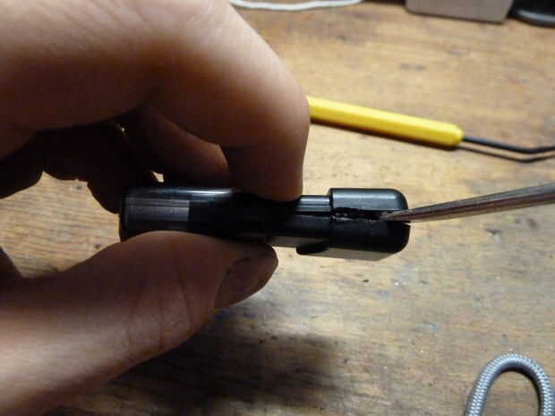 Usando un pequeño destornillador de cabeza plana o un cuchillo x acto, abrir el caso de pendrive, teniendo cuidado de no dañar el PCB interior.  El pendrive será relativamente seguro fuera de su caja, solo agarre alrededor de los bordes o en la conexión USB y establecido en algún lugar seguro.