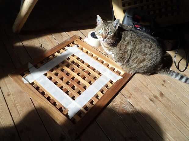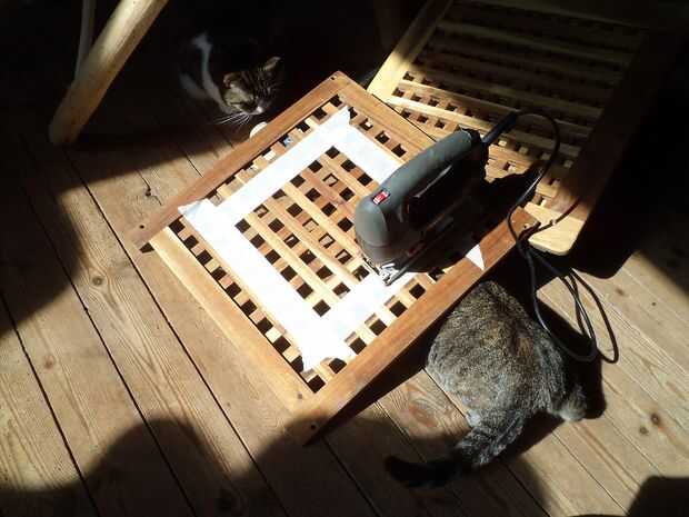 Un bonito agujero en uno de los paneles laterales de la plantilla y suavizar los cortes con un papel de lija.