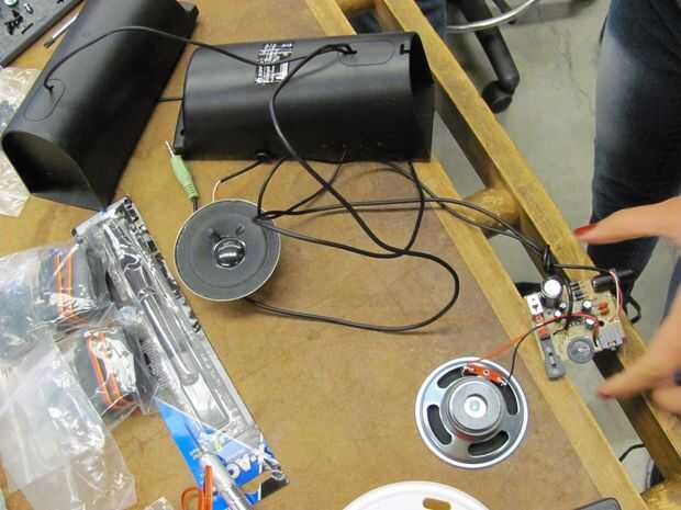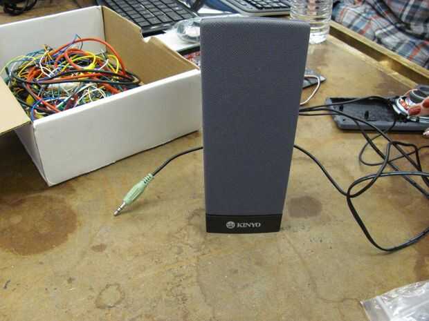 Nota: cable positivo del altavoz va al pin analógico A0 y el cable de tierra con el conector de tierra. El teléfono/componente de producción de sonido se enchufe en el cable del componente del altavoz.