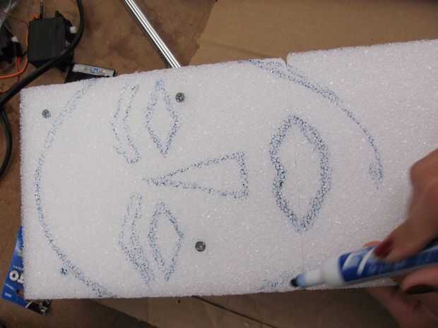 Diseñar la forma de que la cara se verá como será usted! Nuestro modelo seguido con espuma y modelado en arcilla de secado al aire para formar una cara.