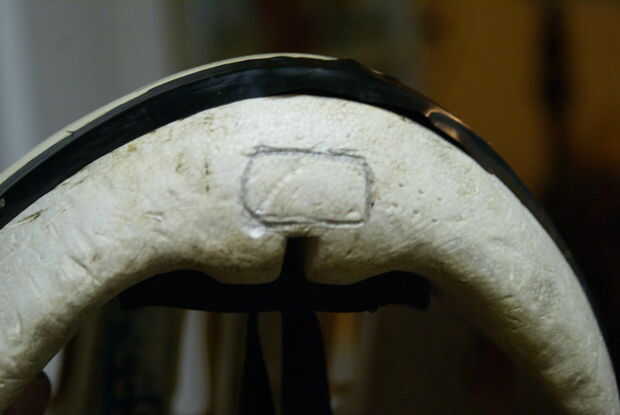 Había ahuecado este espacio con el cuchillo de la pluma. La herramienta Dremel funciona, pero tarda más. También debe mantener el nuevo espacio de agujero ajustada a la batería. Esto es porque la batería no se sostiene con otra cosa que la elasticidad de la espuma, por lo que no va el tablero con el cuchillo.