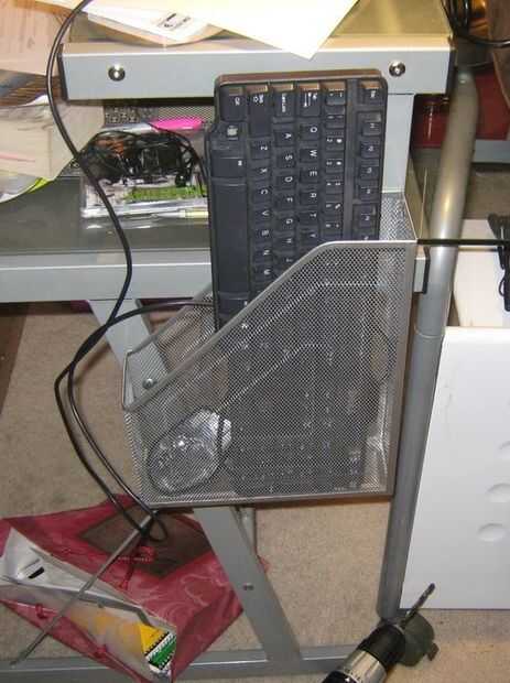 este Instructable es una guía paso a paso para convertir un barato aluminio malla revista titular (disponible en cualquier lugar de suministros de oficina, Wally World o destino) en un carrito de almacenamiento montado en mesa atractivo y estable. Mi propósito era hacer un teclado y un ratón, pero usted podría poner cualquier cosa en él realmente.