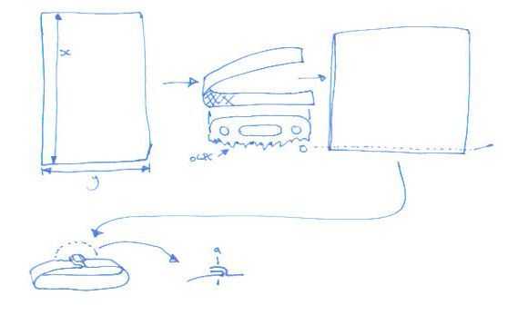 El diseño básico de la bolsa sí mismo es un tubo que luego es cerrado en un extremo. Para eso necesita un rectángulo como abajo donde x es 2 o 3 pulgadas más grande que la circunferencia de la laptop y y tal vez es 6 pulgadas más largos que el portátil.