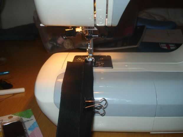 Para el segundo lado usé una hebilla de la bolsa - que coincidentemente fue el ancho correcto, la hebilla se obtiene puede estar bien para esto. Dejando la tracción de la máquina la tela, que doblado sí mismo encima en la hebilla para exactamente el ancho adecuado. De esa manera todo lo que necesitaba para pensar era mantener los puntos la misma distancia del borde.