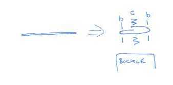 Cada pieza de correa está hecha de una tira de tela que es poco más de dos veces la anchura de la correa final. Doblar los bordes hacia el centro, y deben superponerse un poco de pulcritud. Como en el diagrama, se cose un hilo sola línea por cada lado en «b». Esto es complicado coser para obtener buena apariencia porque ves cada puntada. Conseguí buenos resultados utilizando un clip de carpeta para el primer lado para asegurarse de que fue doblado derecho.
