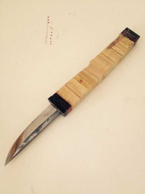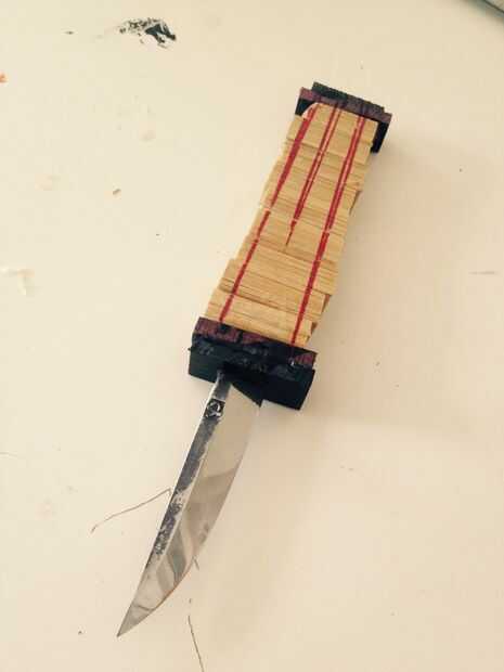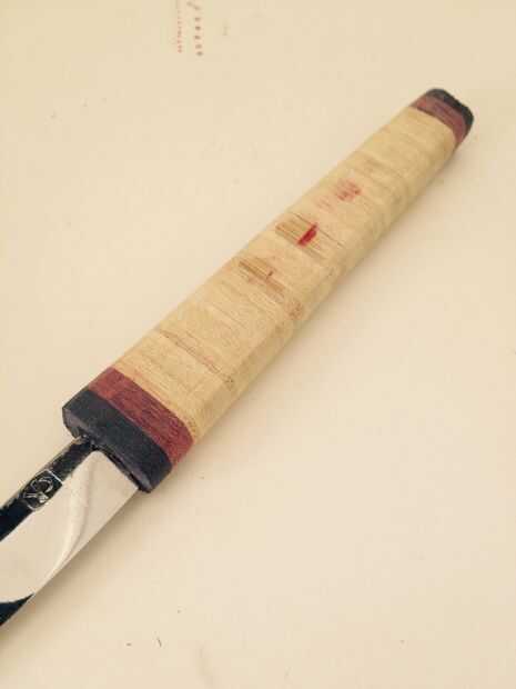 Historia para este cuchillo:Mi hijastra es muy creativo y competente en la cocina. Cosas que ella puede convertirse en una comida fabulosa. Para su graduación de high School secundaria actual hice un cuchillo de cuero rollo así que ella podría tomar