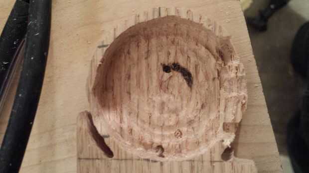 Bien ahora que tienes los cortes ásperos podemos comenzar vaciando la zona para el cargador y cortando la curva. Empecé por encontrar el centro de donde quería el cargador que, dejando todavía espacio para el lado del soporte. Taladré un agujero que podía utilizar la guía de corte de dremel círculo y un agujero para la broca dremel. Entonces empecé a cortar círculos comenzando en el centro y mi forma de trabajo hacia el exterior. La guía tiene un ajuste de altura por lo que mantiene en unos 10mm. Yo continué hasta que tuve un círculo lo suficientemente grande como para caber el cargador. No tienes que cortar todos los círculos espalda con espalda a que se vea como una Diana. Con el método de bullseye puede simplemente cortar unos relieves y quite los restos con un destornillador. Antes de que corte el centro (quitando el agujero piloto) se desconectará de la curva exterior. He hecho la broca profundizar por lo que reduciría todo el camino a través y alineado por donde pensé sería una curva. Originalmente planeé tener sólo 2 lados rectos pero jodido y cortar demasiado. En lugar de comienzo sobre lo rescatado por el mismo en el otro lado y haciendo una mirada agradable de curvas. Luego cambia al accesorio de pulido/lijado y ajustar la altura lo mismo que antes. Atascado en el agujero piloto tiró de él hacia fuera para hacer algunos cortes de alivio y lo encajó a presión apagado como antes con un destornillador. Entonces traté de suavizar tantos picos como pude con la punta pero no tiene que ser perfecto, no ves cuando el cargador está allí. Después de que fuera hecho pongo el cargador marcado y en donde el reloj iba a ir, ya que se encuentra más bajo el cargador. Traté de cortar algunos relieves con la dremel, fue terrible, pero luego me cambié a la lijadora mini y funcionó muy bien.