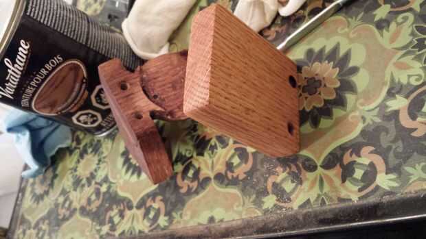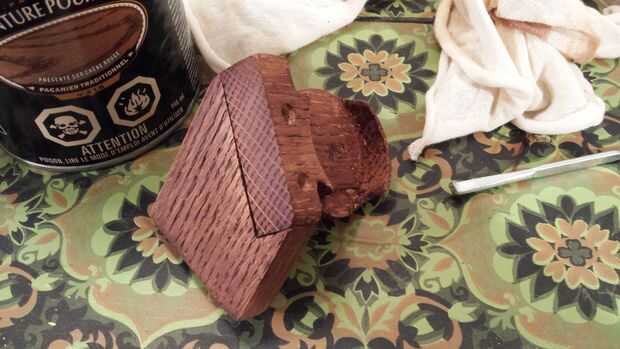 Usé 2 colores diferentes de manchas. Dependiendo del tipo tienes sólo tienes que seguir, dice lo que el puede. Los 2 había eran muy diferentes uno tuvo 20 minutos y el otro era 2 horas el tiempo de secado. Para un trabajo esta pequeña recomiendo la botella comprimible, mucho más fácil y rápido secado. No lijar bastante y tuve algunos poros profundos para relleno que requieren múltiples capas para rellenar. Antes de empezar la coloración utilicé y compresor para limpiar la madera de aire. Usé una tela frote sobre la mancha espere un minuto o 2 y limpie con el grano. Mucho se ha bastante espera para lo seco y lo pones de nuevo juntos. Después de usted claro usted puede cubrirlo pero me gustó el aspecto mate tan a la izquierda como es.