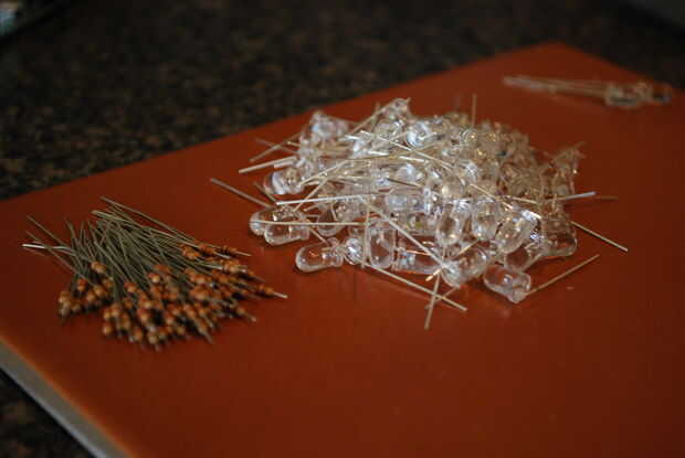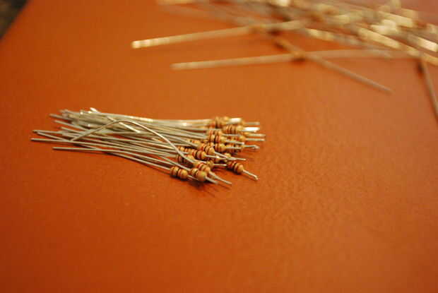 En primer lugar, cortar un cable de cada resistor dejando unos 3-5mm (ver foto 1).