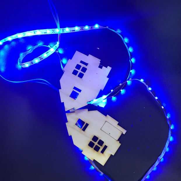 Para ver eficientemente si las clavijas están encendido o apagado, decidimos enchufe luces así que usted puede saber fácilmente mirando. Allí fue necesarios dos franjas led para iluminar la casa. Por lo que conectamos las franjas de LED en crudo. También la carga de voltaje de led es de 12V y el enchufe de voltaje es de 220V. Por lo que utilizamos un transportador de 220V/12V para cargar los LEDs con la velocidad adecuada.