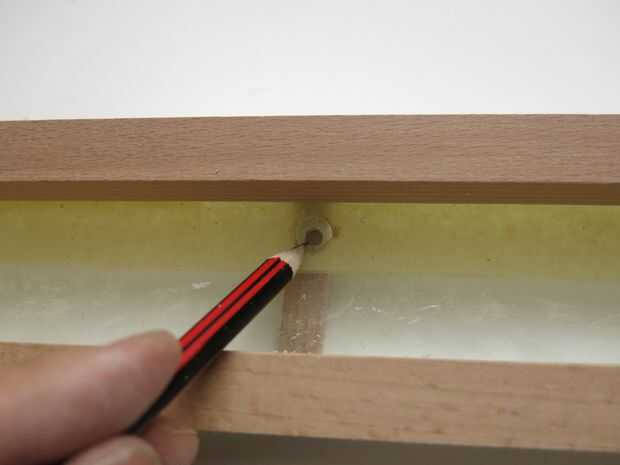 Chaflán agujero con una broca de ∅ 10 mm, en el lado del tablero que es lo opuesto a los otros chaflanes.