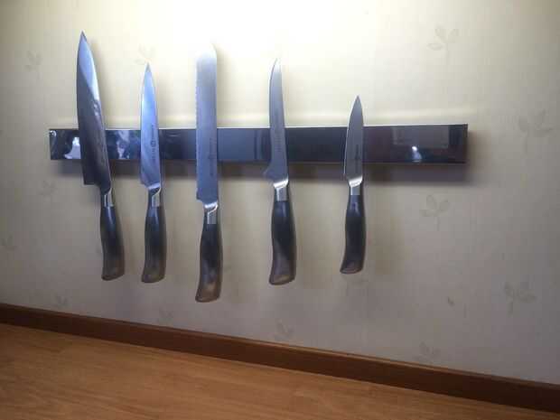Compré un portacuchillos barato, hace el trabajo pero no se ve tan buena. Pero los imanes y la pared soporte es de gran utilidad.
