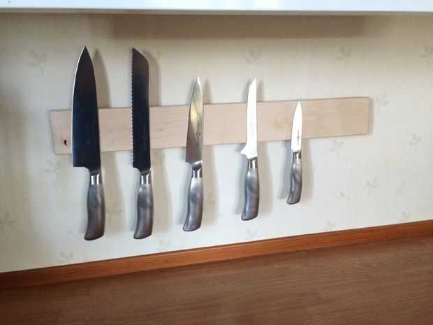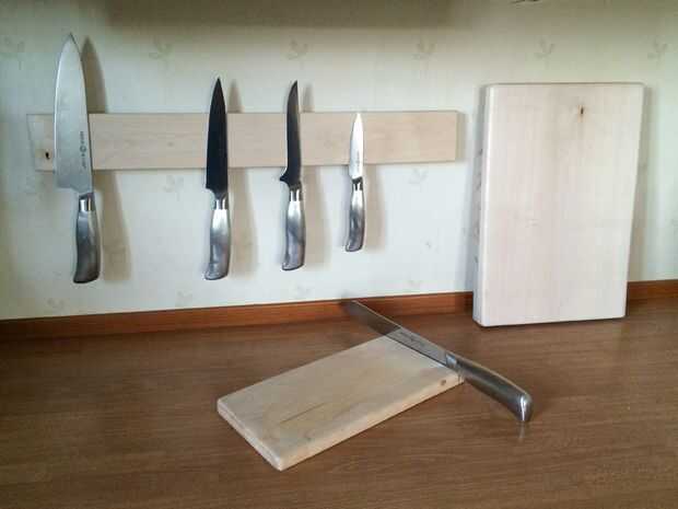 Por lo tanto, aquí estamos. Si se mide la distancia entre los imanes antes de pegarlos a la Junta, los cuchillos voluntad automáticamente colgar a una buena distancia uno del otro en la pared.