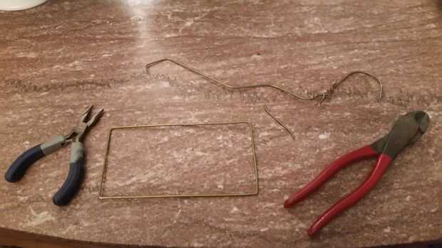 Cortar una sección grande de una percha de alambre. Utilice alicates de punta delgada para doblar el alambre en un 3.5" por 6.5" rectángulo. La soldadura de los extremos del alambre junto donde se encuentran (puede necesitar ligeramente de archivo o el alambre en el área donde se suelda al exponer el metal desnudo de la soldadura se adhieran a la arena).
