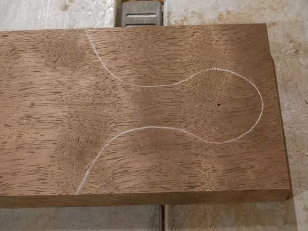 Como se puede ver, mi plantilla no es tan amplia como la Junta. Realmente debo hacer otra plantilla, pero soy un perezoso usted-saber-qué... algún día. Extender el extremo de la línea por el ojo a un lado para crear uno de los hombros de la Junta, entonces use una escuadra de combinación para encontrar el punto del hombro correspondiente en el otro lado. Luego extiendo la otra línea a ese punto del hombro. No tienes que ir a través de este galimatías como he hecho mi dibujo de PDF para que los hombros estén en su lugar.