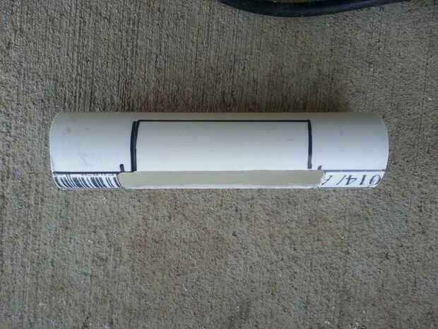 Una vez la longitud del tubo es determinada corte, entonces puede trazar el corte inicial necesario para sostener el teléfono. En mi caso es un tragamonedas de 3 3/8 "x 1/2". En la primera fotografía ya había cortado la ranura hacia fuera prueba cupo el teléfono que estaba muy apretada para mantener en su lugar. En la segunda foto, con el teléfono en su lugar he marcado la ubicación del borde de la pantalla visible, no el borde del vidrio pero el borde de la pantalla visible. Marcar este lugar para un corte adicional como se ve en la tercera imagen. Este segundo corte fue darme acceso a las funciones de pantalla que serían pero aún oculto dentro del tubo, sostenga el teléfono firmemente en su lugar.