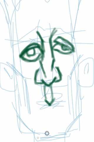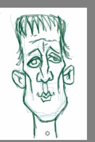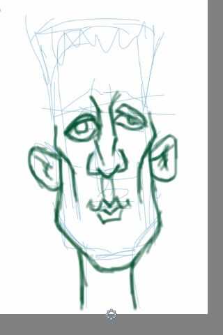 Una vez que he bloqueado la colocación de las características cree una nueva capa para empezar mi dibujo de línea. Aquí decido que este chico va a ser en su mayoría verde así que hacer una suposición en una versión más oscura de ese color para empezar a dibujar con él. Porque todavía no estoy seguro de cómo este chico va a salir, sigo dibujar libremente para ver lo que consigo trabajar con. Es bueno si veo algunas cosas buenas, empezando a desarrollar aquí, pero si no, no te preocupes y a seguir trabajando en él. sabiendo que tengo un par más pasos antes de esperar que comience a buscar algo.