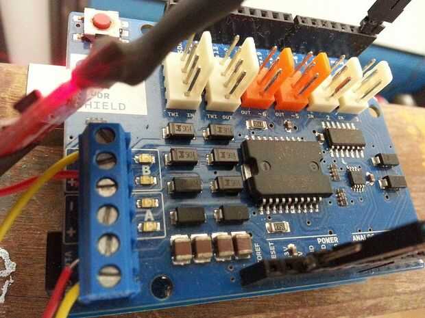 4. Conecte el motor de la C.C. al canal B de Motor protector.