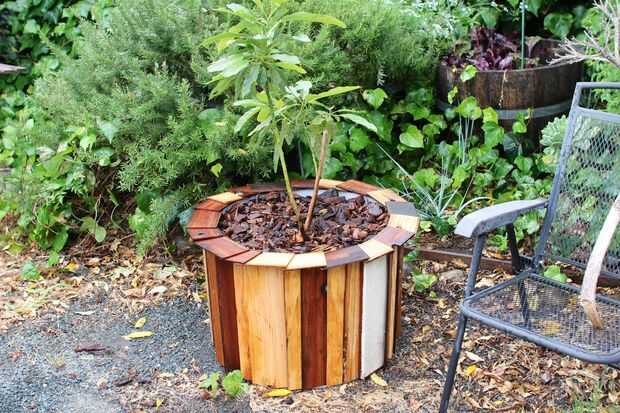 quería construir algunos contenedores simple, bajo costos y atractivo para unos frutales que estaban listos para ser replantados en el patio de mi casa. Segunda mano con 55 galones barriles de plástico seguro alimentos y algunos restos de madera que limpió en la cepilladora, pude crear algunas macetas muy básicos para mi patio jardín. La madera era gratis y los barriles fueron comprados de craigslist para $10 por pieza.