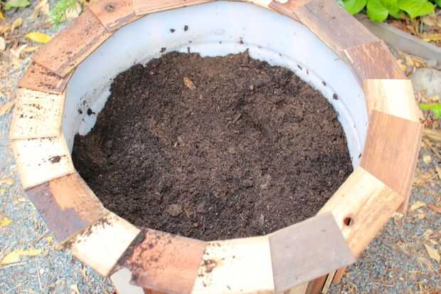 Llene las macetas con una mezcla de suelo que se ha optimizado para la jardinería de contenedor.  En este caso, algo con un porcentaje de compost decente y buen drenaje.  Estoy usando "Kellog Patio jardinera Mix" que compré en mi local Home Depot.