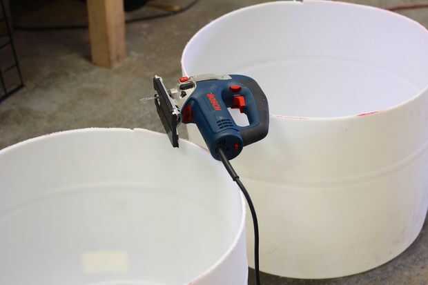 Para hacer dos jardineras más pequeñas en lugar de sólo un enorme, cortar el cilindro por la mitad y no cortar la parte superior del cañón, ya ahora se convertirá en la parte inferior.