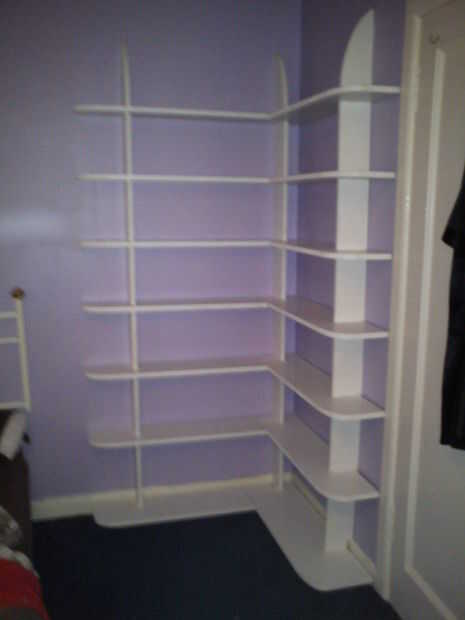 Esto debería ser más o menos se. Si se cortan todos los bits correctamente y firmemente, el estante no debe tambalearse y los estantes particulares deben quedar firmemente en su lugar. Si ese no es el caso, significa que algo jodido y necesita arreglarlo ahora. Básicamente, tomar los trozos de madera que corta antes y forma astillas de ellos y un martillo en los recortes que son demasiado amplias, que estén ajustados. Una vez hecho esto, todo debería estar bien