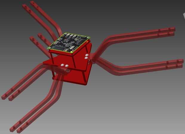 El camino que se diseña actualmente requiere los brazos para conectarse a través del remache, pero probablemente podría modificar el diseño y los brazos con pegamento del pegamento. Diseñé este marco para el controlador de vuelo es la KK pero probablemente puede utilizar cualquier controlador con distancia de 45mm.