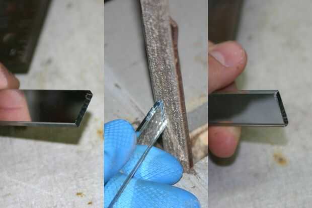 Existen bordes afilados ahora donde corte. De arena los off, teniendo cuidado a no bloquear el filo en el papel de lija y lo gubia. Decidí usar mi Super fuerza guantes de goma para este pedacito, que me protege de bordes afilados y le da un mejor agarre.
