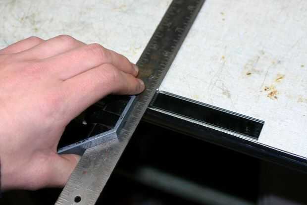 Use una mano para tirar el espejo contra la Plaza y colocarlo en algún lugar que parece debería ser cortado, no trate de medir, es arte. Coloque el cortador de vidrio en un lado del espejo, presionar duro y arrástrelo a través al otro lado. Debe oír un sonido de crujido leve como la herramienta de corte tritura una línea delgada en la superficie, y usted debería ver una línea visible. Si no lo haces todo el camino a través, tener mucho cuidado a lo exactamente cuando intenta otra vez conseguir una ruptura.