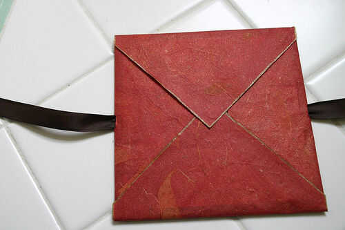 Lugar invitación dentro y luego plegar las aletas puntiagudas asegurando el cierre con un punto de pegamento solo.